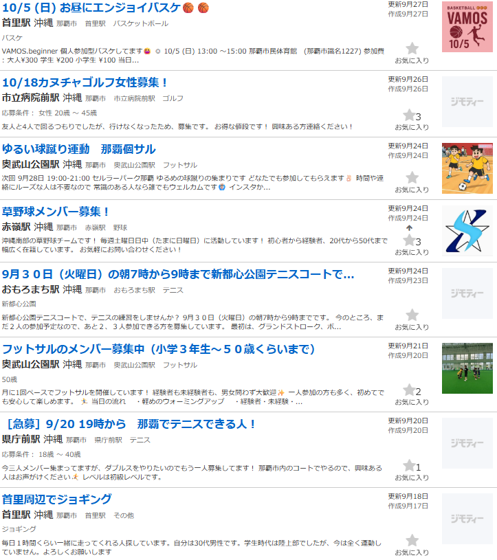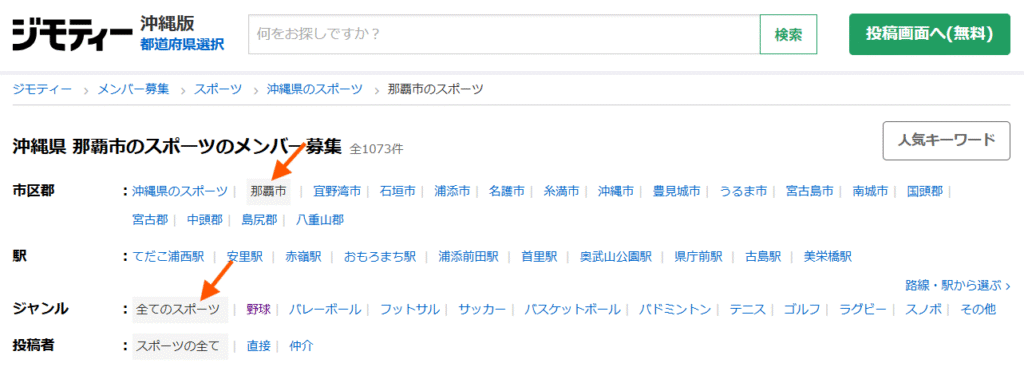 ここでは「那覇市」×「すべてのスポーツ」で検索してみます!