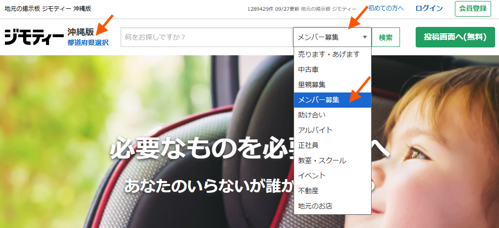 ①まずはジモティのHP(https://jmty.jp/okinawa)に行き、都道府県選択で「沖縄県」を選択